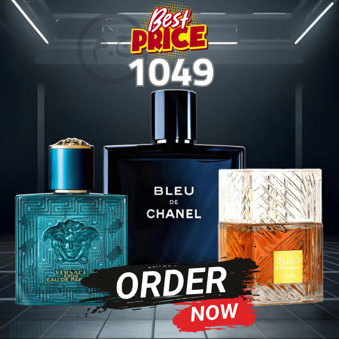 عرض برفيوم خمرة ٤٠ مل + فيرساتشي ايروز الزرقاء 100مل + بلو دي شانيل ١٠٠ مل