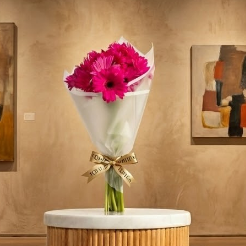 أضف لمسة من البهجة إلى أي مناسبة مع باقة الجربارة الفوشيا المبهجة، المنسقة بعناية في غلاف أبيض أنيقة. تعكس الزهور الفوشيا النابضة بالطاقة وحماسًا وسعادة، مما يجعلها الاختيار الأمثل للاحتفالات، الإهداءات العاطفية، أو كإضافة مبهجة لمنزلك. يعزز الغلاف الأبيض البسيط من جمال لون الزهور الجريء، ليخلق تنسيقًا متناغمًا وجذابًا. سواء كهدية أو كقطعة مركزية، تضفي هذه الباقة سحرًا ورقيًا. اطلب الآن لنشر السعادة وجعل كل لحظة مميزة.