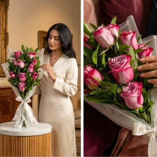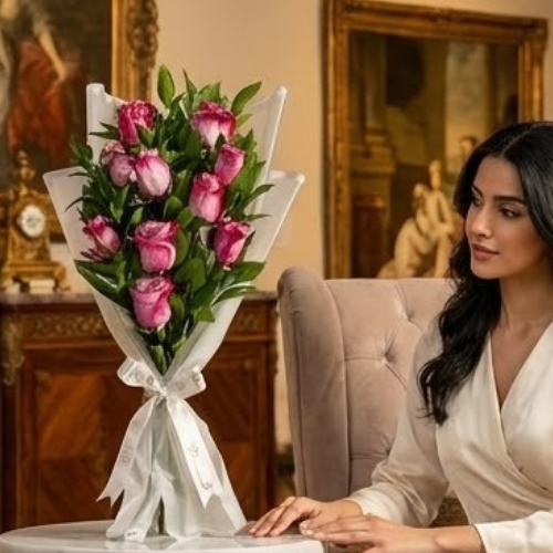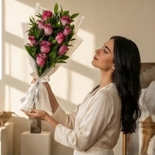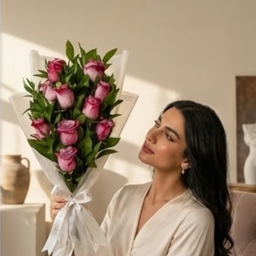 تخيل أنك تمنح شخصاً مميزاً لمسة من الأناقة والرقي مع باقة منسقة ورائعة تحتوي على أزهار الجوري البنفسجي وأوراق السفندر الأخضر. هذه الباقة المذهلة تجمع بين الألوان الهادئة والأوراق الخضراء النضرة، مغلفة بعناية في غلاف أبيض أنيق يعكس جمال وترتيب الأزهار الداخلية. هذه الهدية المثالية تحمل معها معاني الحب والرقي، وتعد خياراً مثالياً لأي مناسبة خاصة. تحتوي الباقة على 10 زهور من الجوري البنفسجي الجذابة، التي تضفي على المكان شعوراً بالدفء والأناقة. اطلب الآن وأضف لمسة من السعادة والتميز لمن تحب، لتجعل مناسباتهم لحظات لا تُنسى.