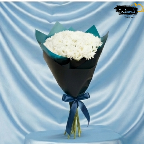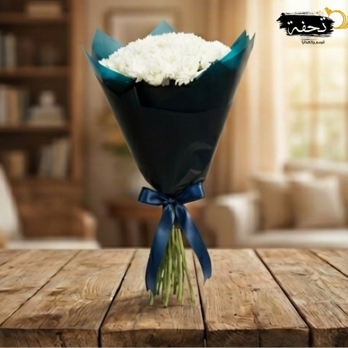 داكن يمنحه تباينًا جذّابًا يبرز نقاء اللون الأبيض ويضفي عليه عمقًا راقيًا. يرمز هذا التنسيق إلى الصفاء والتوازن، حيث يلتقي النقاء بالحيوية في مزيج متناغم يعكس هدوء الطبيعة وفخامتها في آنٍ واحد. بفضل بساطته الأنيقة، يعدّ الأقحوان الأبيض في غلافه الأخضر الداكن الهدية المثالية للتعبير عن التقدير والمشاعر الصادقة، أو لإضفاء لمسة من الصفاء والسكينة على أي مساحة.
