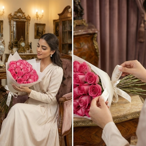 تخيل أنك تمنح شخصاً مميزاً لمسة من الأناقة والرقي مع باقة منسقة ورائعة تحتوي على أزهار الجوري البنفسجي وأوراق السفندر الأخضر. هذه الباقة المذهلة تجمع بين الألوان الهادئة والأوراق الخضراء النضرة، مغلفة بعناية في غلاف أبيض أنيق يعكس جمال وترتيب الأزهار الداخلية. هذه الهدية المثالية تحمل معها معاني الحب والرقي، وتعد خياراً مثالياً لأي مناسبة خاصة. تحتوي الباقة على 10 زهور من الجوري البنفسجي الجذابة، التي تضفي على المكان شعوراً بالدفء والأناقة. اطلب الآن وأضف لمسة من السعادة والتميز لمن تحب، لتجعل مناسباتهم لحظات لا تُنسى.